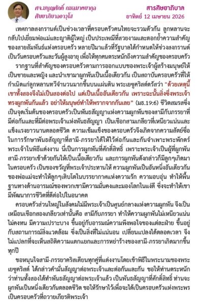 3. สารศิษยาภิบาล 12 เมษายน 2026