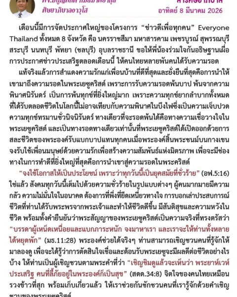 สารศิษยาภิบาล 8 มีนาคม 2026