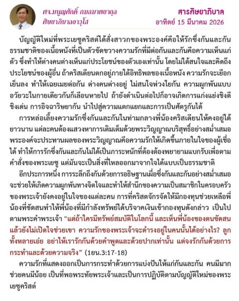 โดย ศจ.มนูญศักดิ์ กมลมาตยากุล 15.3.2026