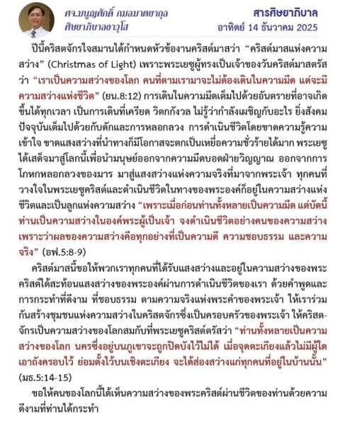 สารศิษยาภิบาล 14 ธันวาคม 2025