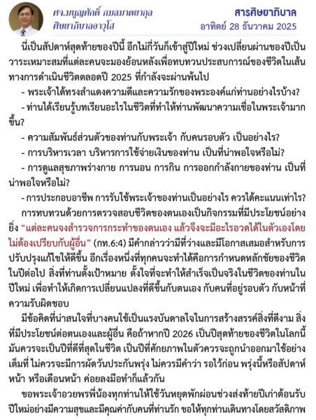 สารศิษยาภิบาล 28 ธันวาคม 2025